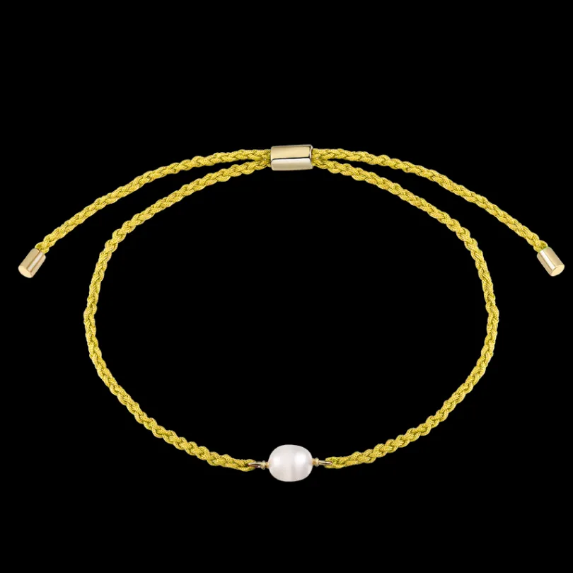 Das zarte Armband aus Nylon und 18 Karat vergoldetem 925/- Sterlingsilber ziert eine schimmernde Süßwasserperle. Es is…