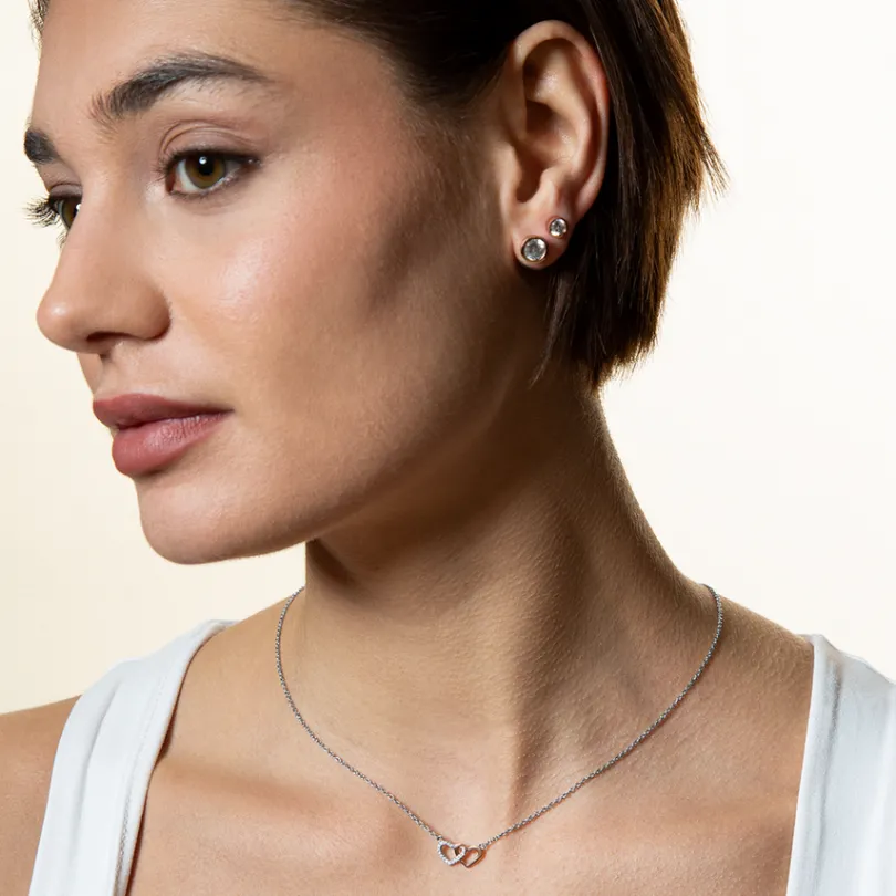 Multicolor. Unsere zarte Halskette aus 925/- Sterlingsilber hält zwei Herzen, welche eng umschlungen silbern und rosé vergoldet erstrahlen. Damit folgst du ganz dem Trend des Multicolor Schmuckes.
