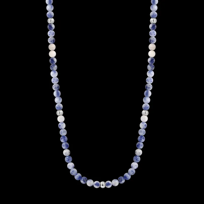 Hol dir den Sommer mit der OCEAN Halskette – ein elegantes Accessoire, das mit seinen zarten Sodalith-Steinen an die tiefen Blau- und Weißtöne des Ozeans erinnert. Die feinen, matten Sodalith-Perlen verleihen dieser Kette eine natürliche Frische, während kleine, rhodinierte Elemente edle Akzente setzen und den Look stilvoll abrunden. Gefertigt aus 925/- Sterlingsilber, veredelt mit einer Rhodinierung, bleibt die OCEAN Halskette glänzend und geschützt.