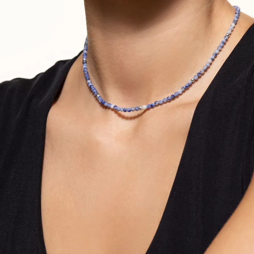 Hol dir den Sommer mit der OCEAN Halskette – ein elegantes Accessoire, das mit seinen zarten Sodalith-Steinen an die t…
