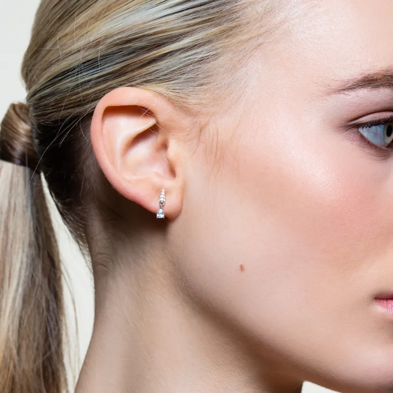 Die zarten DEWDROP Single Ohrringe aus hochwertigem 925/- Sterlingsilber sind kunstvoll gestaltet mit funkelnden Zirkoni…