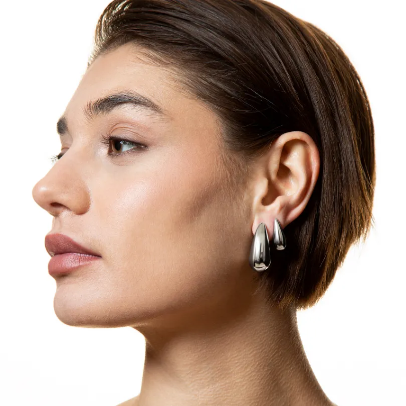 Gehe mit dem Trend mit unseren MINI DROP Ohrringen aus hochwertigem Edelstahl, silberfarben beschichtet. Diese zarten Tr…