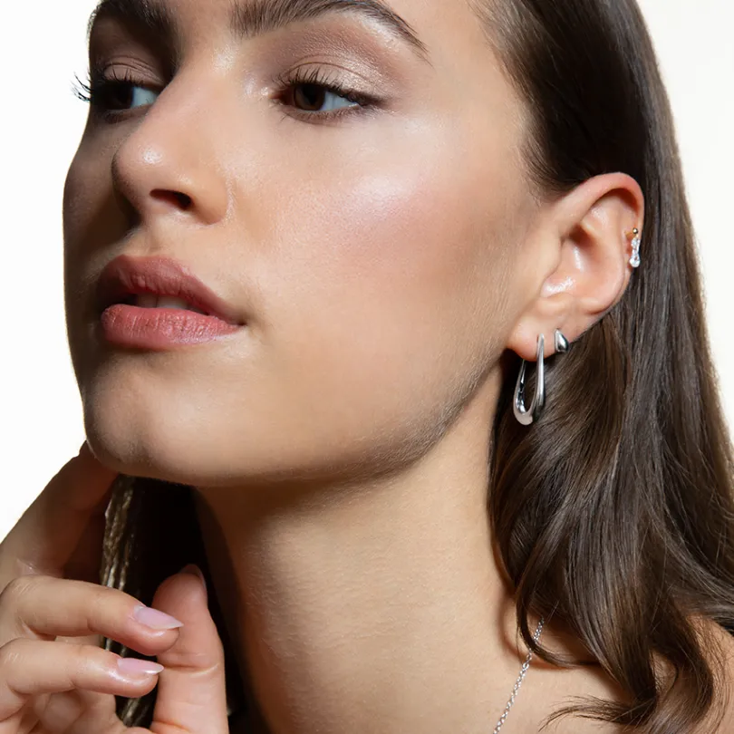 Die RAIN Ohrringe aus hochwertigem 925/- Sterlingsilber mit einer edlen rhodinierten Optik und einem ansprechenden tropf…