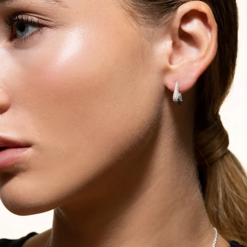 Bringe mit den TRILOGY Creolen aus 925/- Sterlingsilber und rhodinierter Oberfläche einen funkelnden Akzent in deinen L…