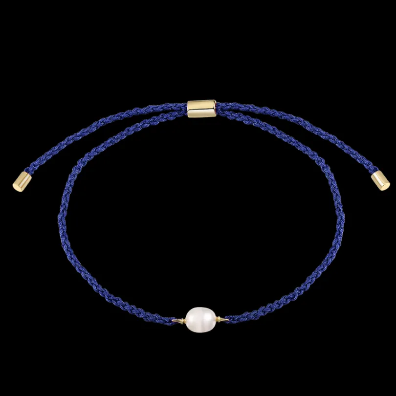 Das zarte Armband aus Nylon und 18 Karat vergoldetem 925/- Sterlingsilber ziert eine schimmernde Süßwasserperle. Es is…