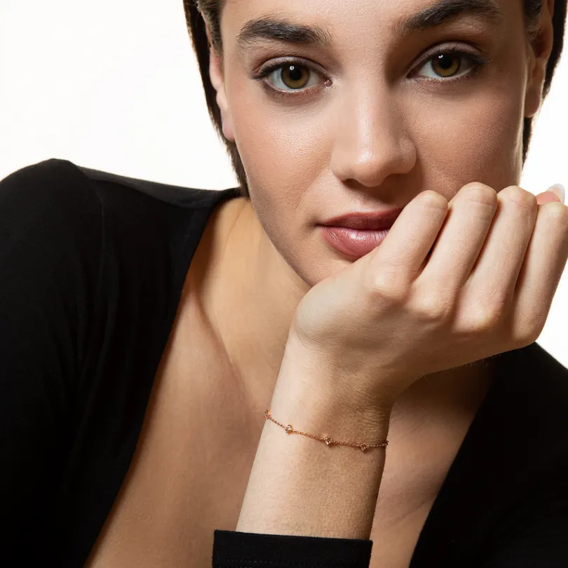 Dieses zarte Schmuckstück besteht aus hochwertigem 925/- Sterlingsilber. Funkelnde Zirkonia-Steine legen sich zwischen …