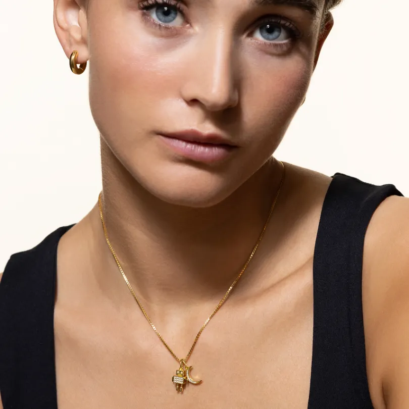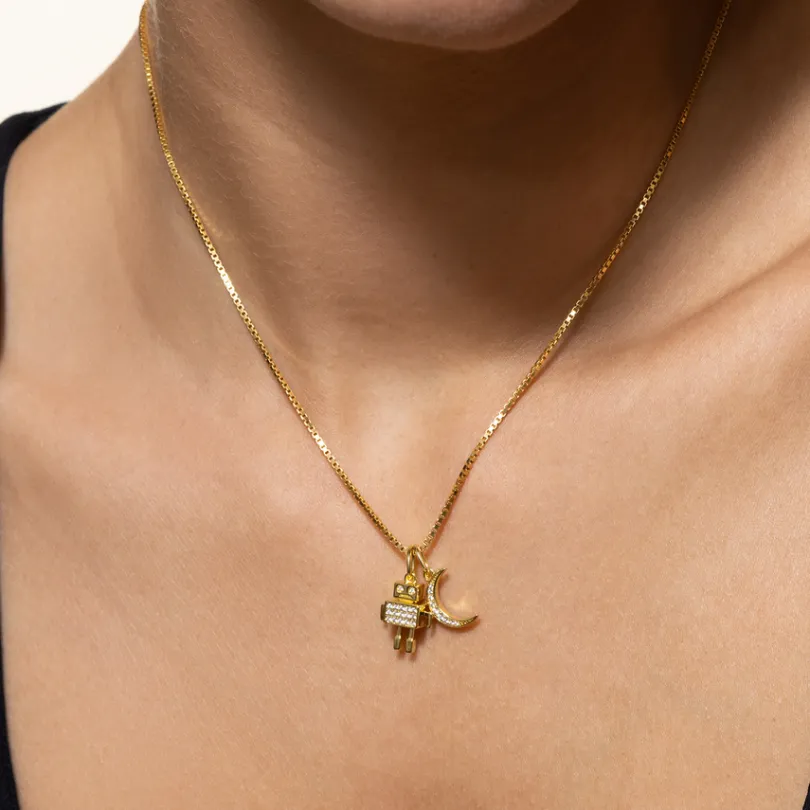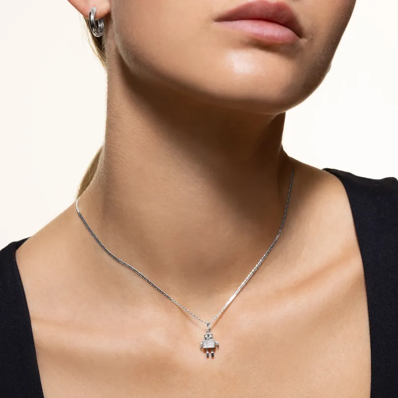 Bringe deinen Look auf das nächste Level – unser einzigartiger ROBOTER Charm aus 925/- Sterlingsilber, veredelt mit e…