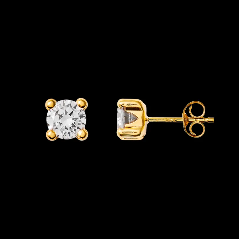 Tauche ein in brillante Eleganz mit unseren exquisiten FINE 14 Karat Gelbgold Ohrringe in Krappenform, die mit einem fun…