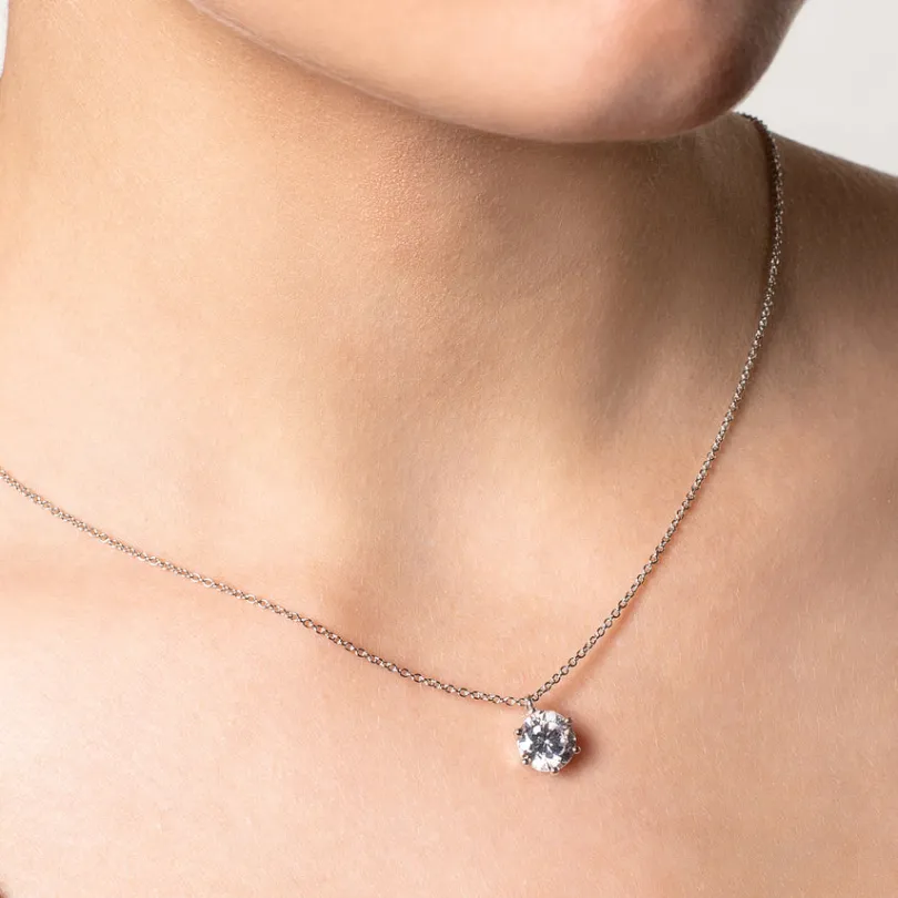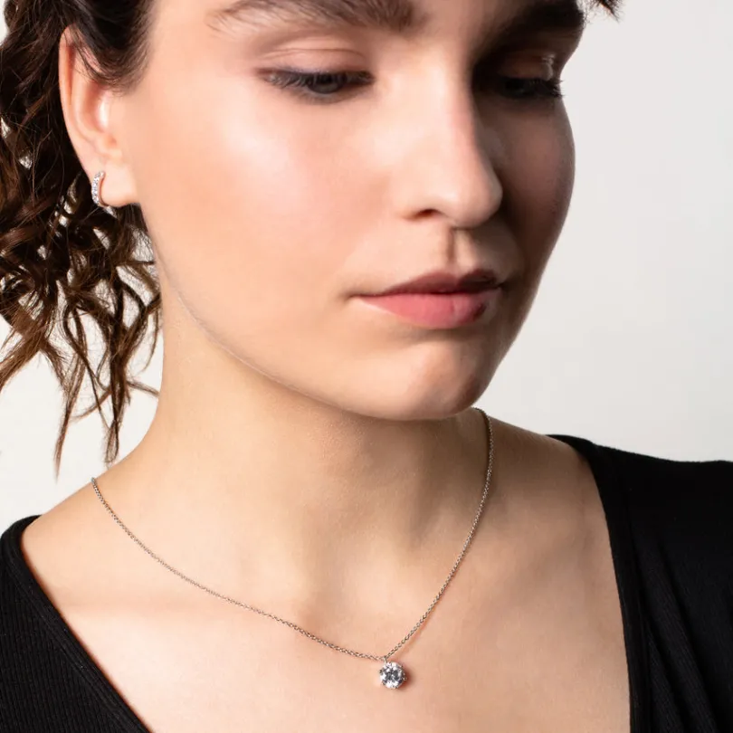 Formvollendet erstrahlt der Zirkonia Stein aus hochwertigem 925/- Sterlingsilber gegossenen Krappenfassung. Mit diesem z…