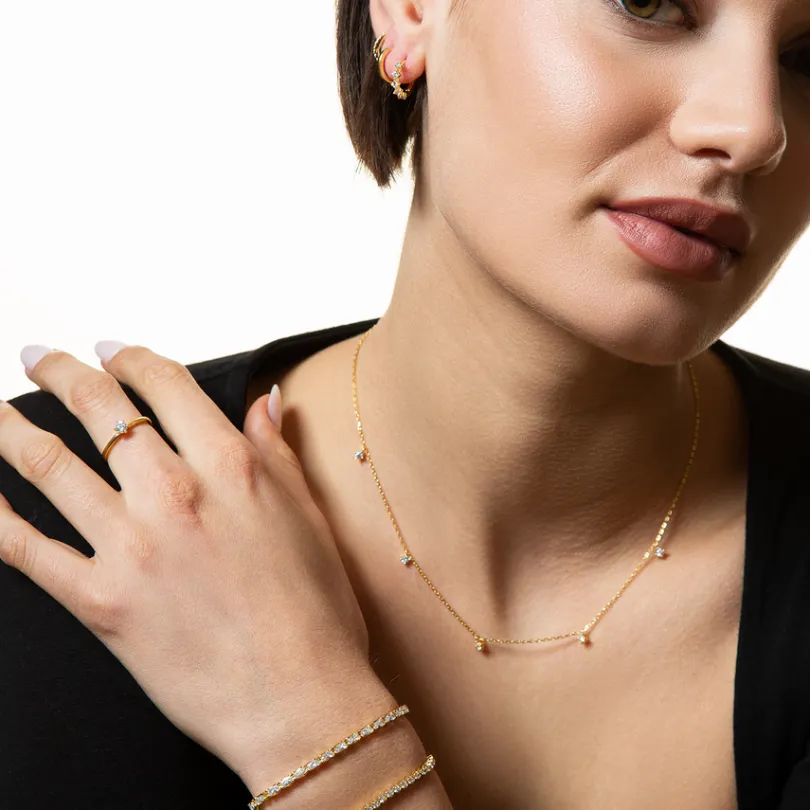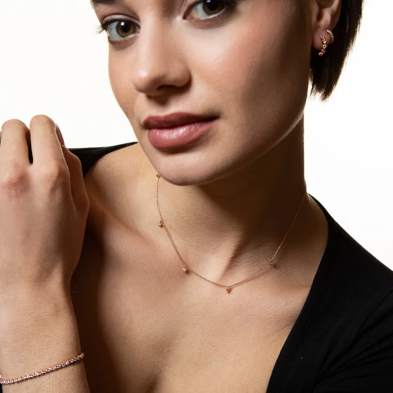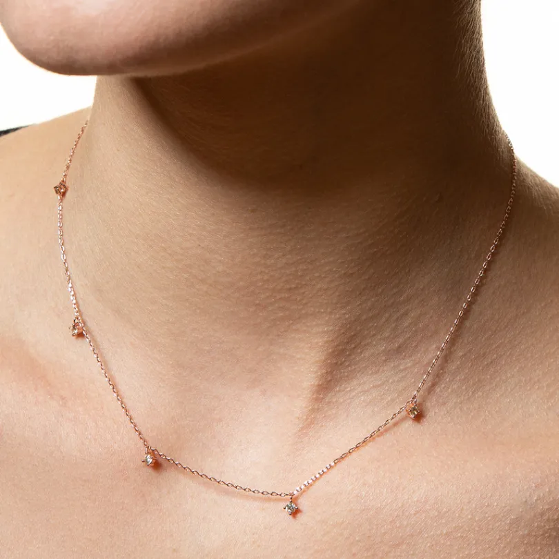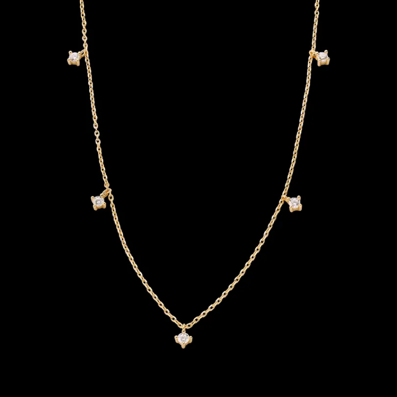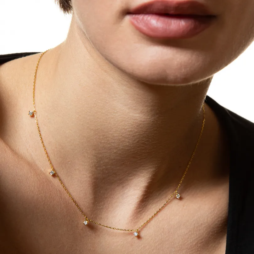 Diese zarte Halskette besteht aus hochwertigem 925/- Sterlingsilber. Das modische Essential zieren funkelnde Zirkonia-St…