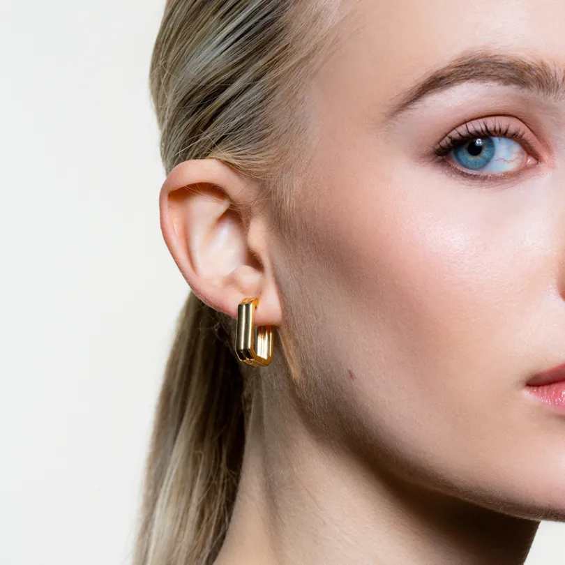 Die FRAMED Ohrringe aus 18 Karat vergoldetem 925/- Sterlingsilber sitzen angenehm am Ohr und bieten den ganzen Tag über…