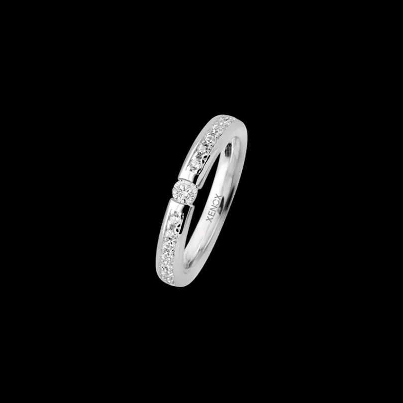 Der Ring aus hochwertigem 925/- Sterlingsilber mit Zirkonia-Steinen gilt als Inbegriff reiner Eleganz und Glamour. Das s…